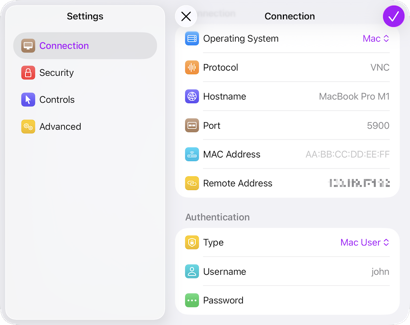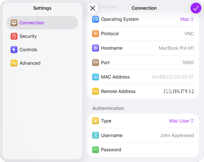 Wenn Sie Screens verwenden, um eine Verbindung zu einem Mac herzustellen, sind korrekte Anmeldeinformationen unerlässlich, um einmalige Verbindungen herzustellen oder einen gespeicherten Bildschirm in der Screens-Bibliothek zu erstellen.
