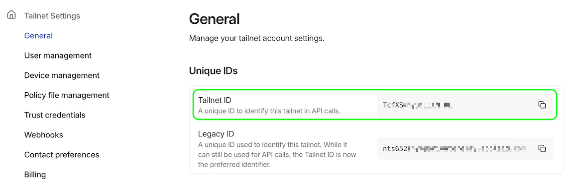 Look for your Tailnet ID and copy it exactly.